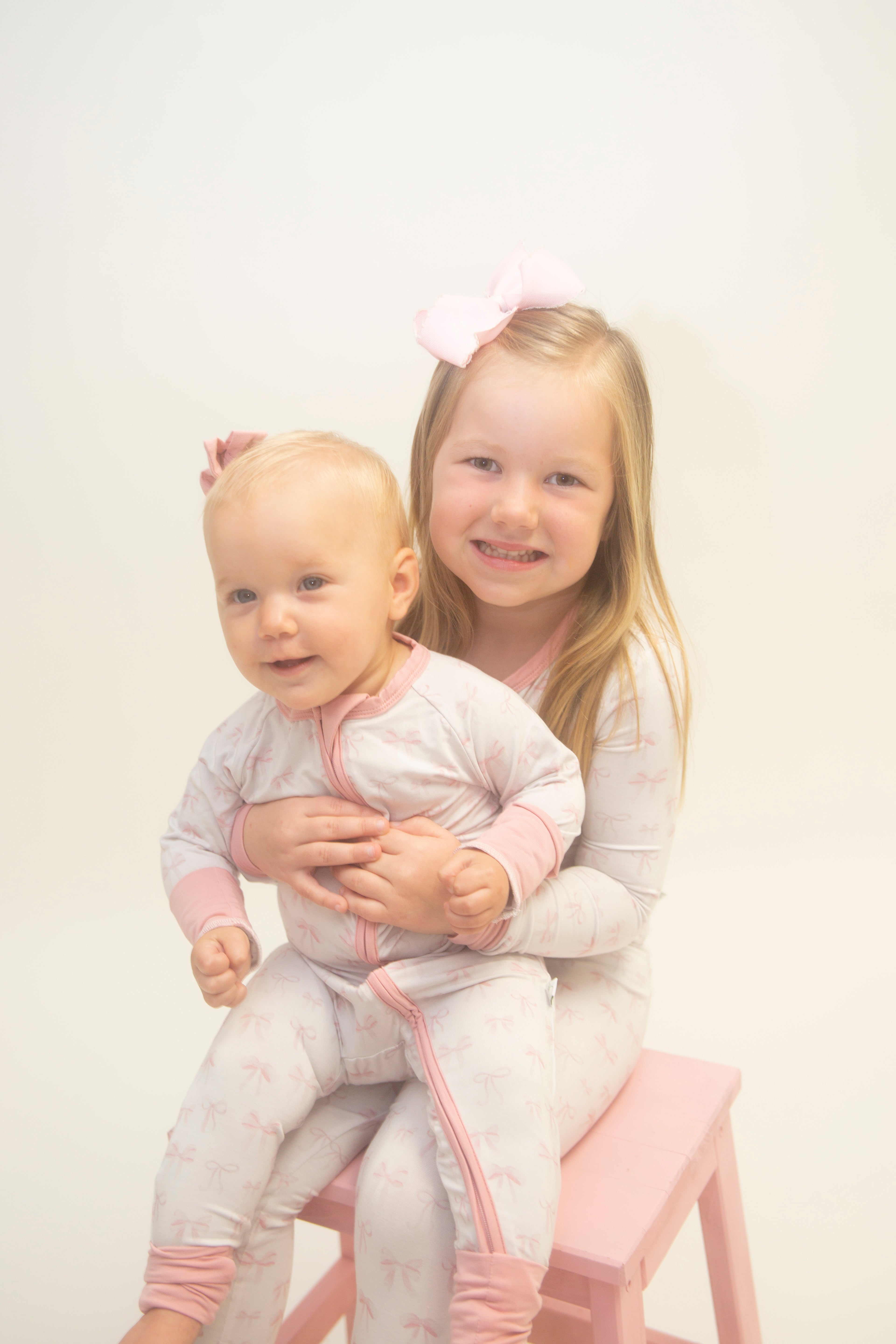 The girliest print for anyone in your girl gang! Soft hand painted pink bows on a white background with a matching soft pink trim. Made from deliciously soft bamboo, these pjs also feature a tagless design for extra comfort and extra length for longer wear!