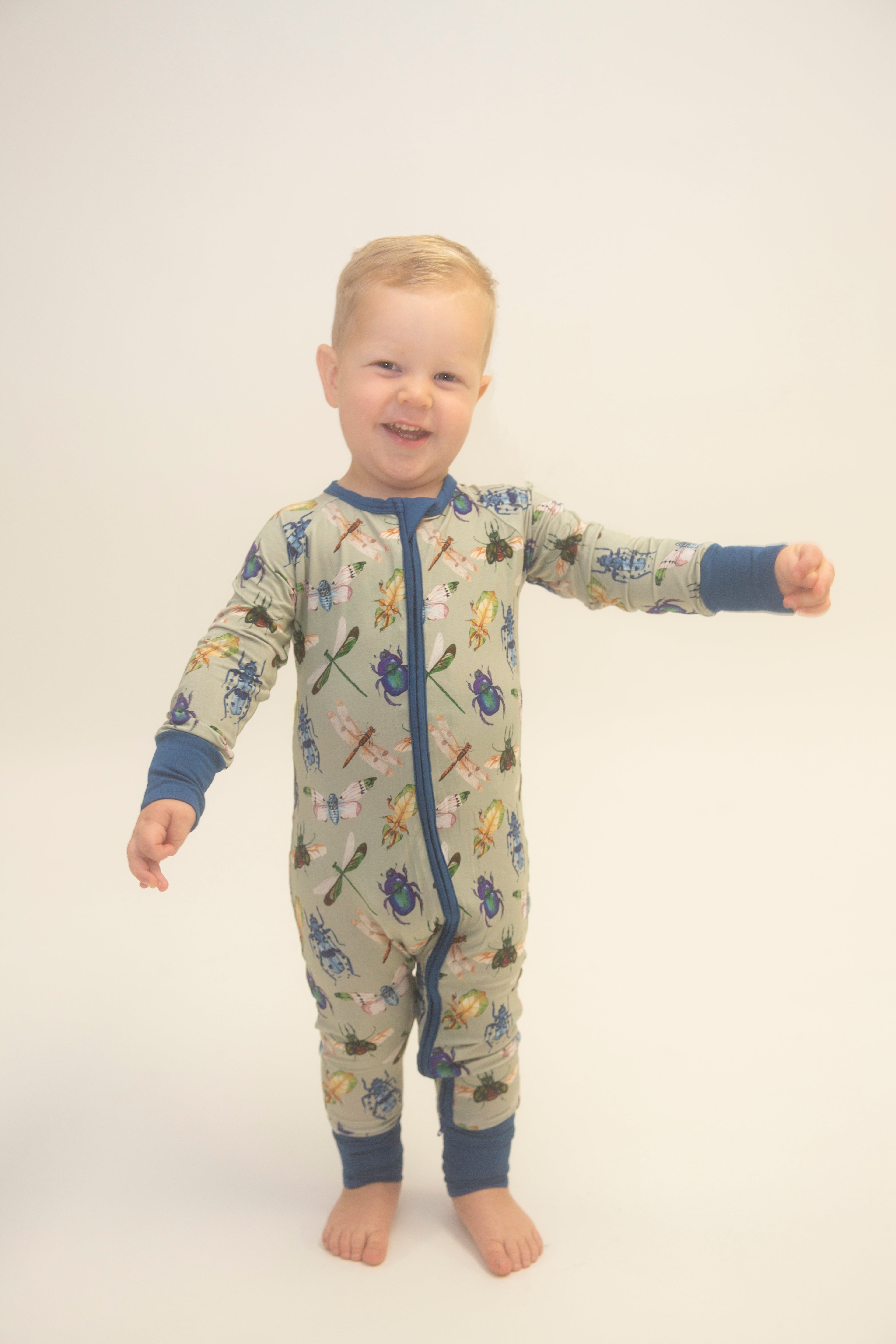 Everything is better under the sea! Your favorite ocean creatures swim across a white background matching the soft blue trim. Made from deliciously soft bamboo with foldable hand and foot cuffs, these pjs also feature a tagless design for extra comfort and two way zipper for double the convenience!