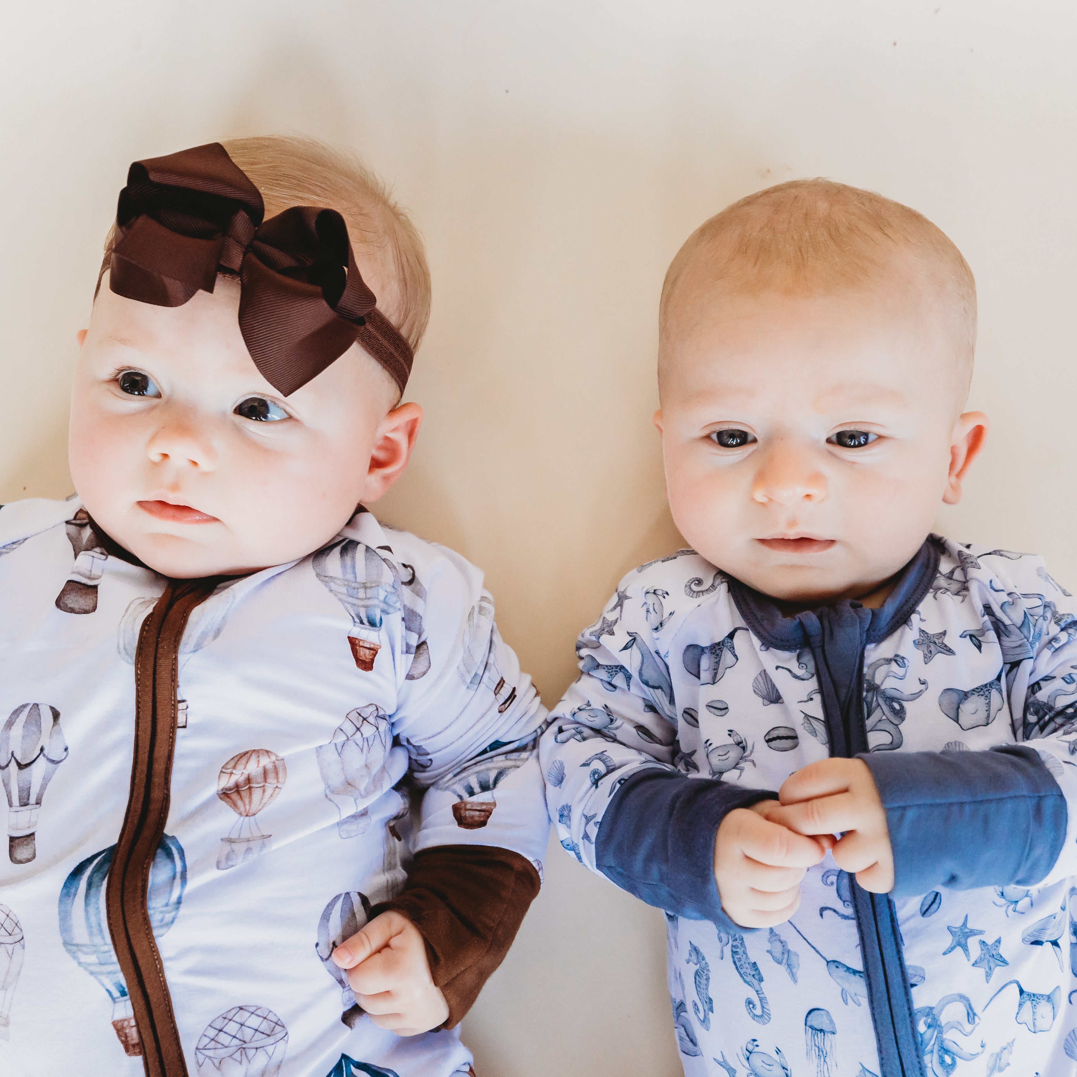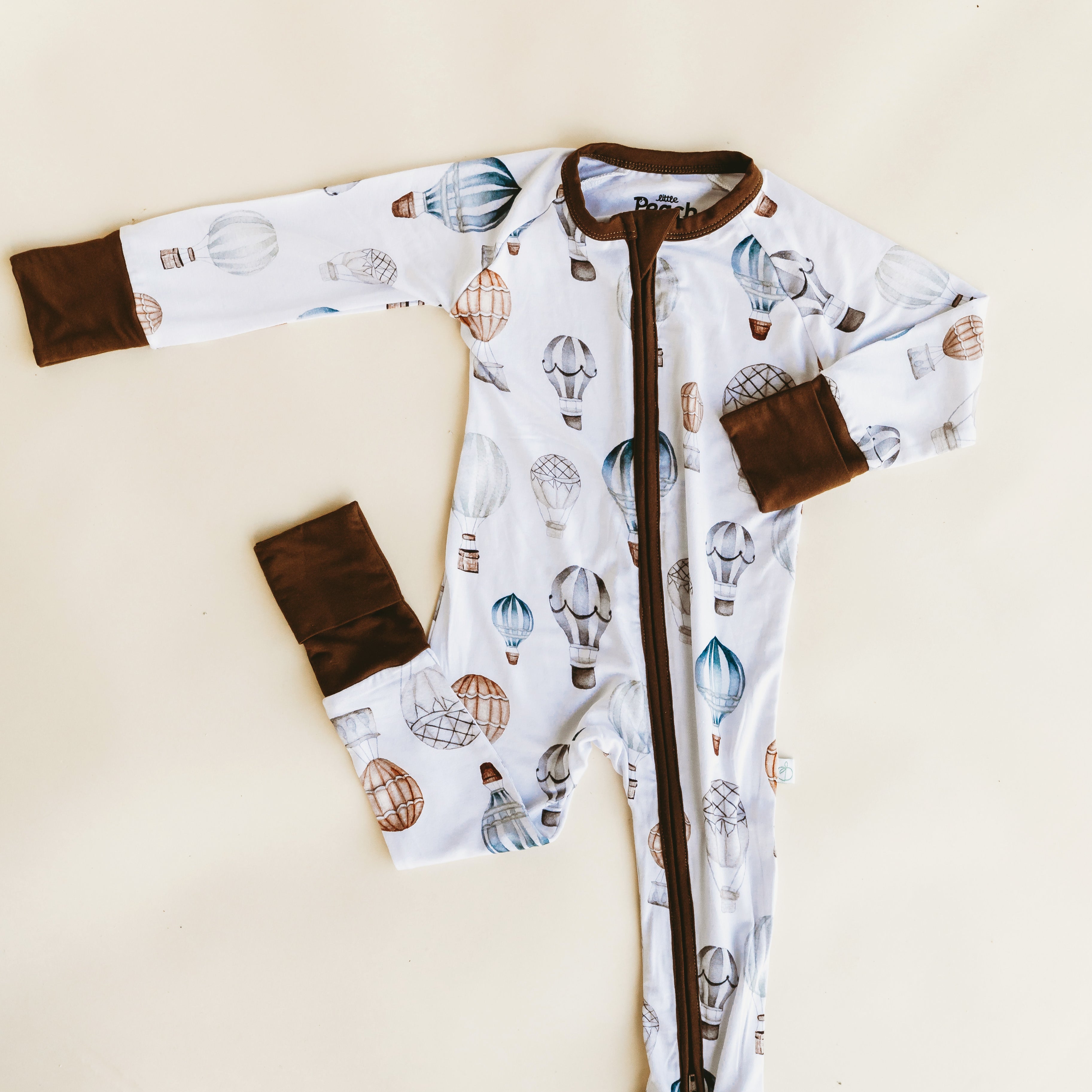Nate the fighter pilot and Lauren the artist/graphic designer stumbled upon the idea of Little Peach PJs when their daughter was born. Quickly introduced to bamboo PJs from friends, they loved the quality and softness of the bamboo, but Lauren found herself stuck to solids as she could never find patterns she loved. It was Nate who pointed out she was an artist with a love of surface patterns and she should make her own. From there the idea grew and expanded to where it is today as Little Peach Pajamas!